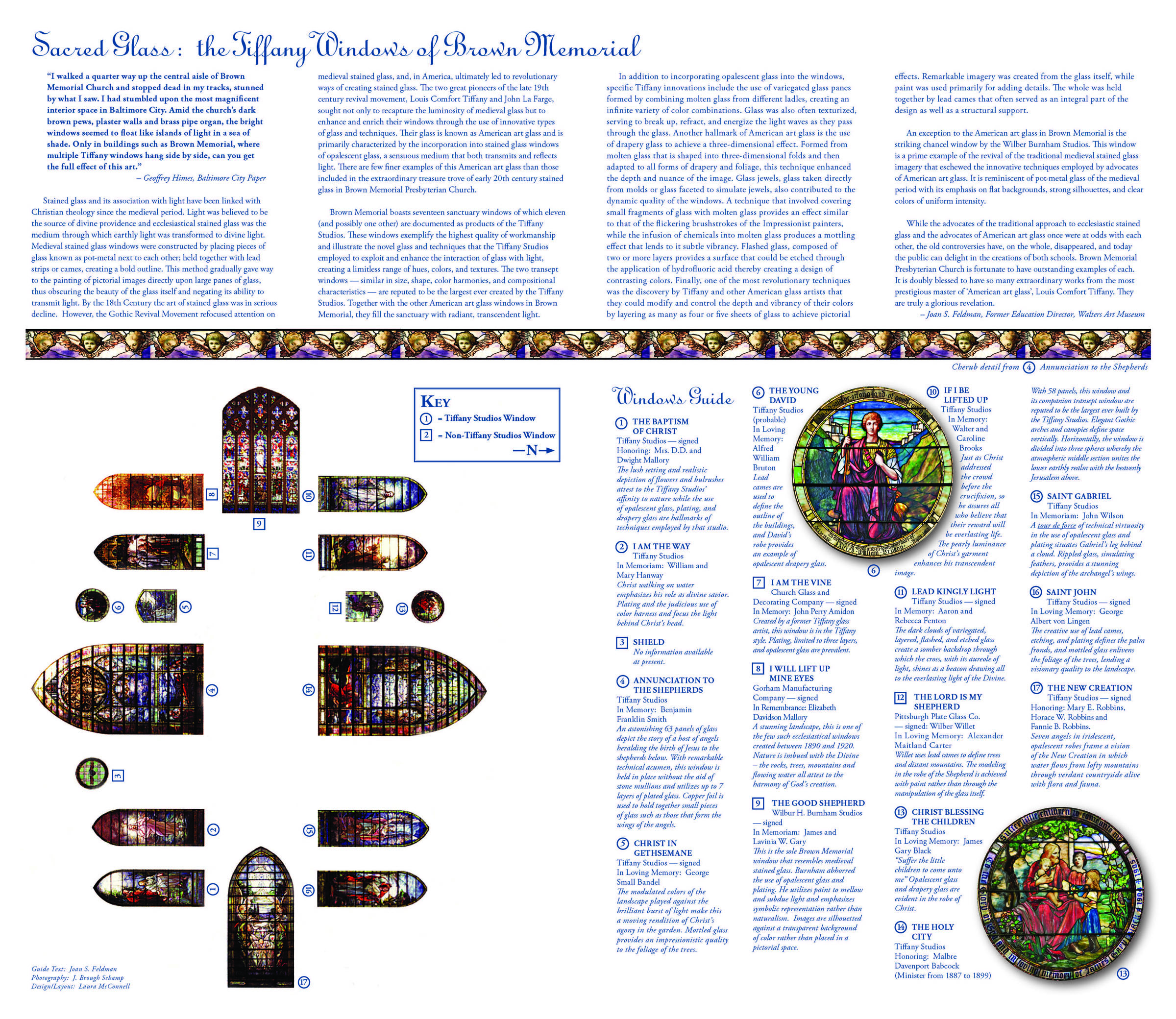 Historical Brochures This brochure was created as a guide to the Tiffany Windows of Brown Memorial Park Avenue Presbyterian Church in Baltimore, MD in 2006. The first page is the outside page, and the second the inside page. It is also an historic piece and marketing piece for the church. The unfolded size is 16 ¾”x 18 ¾” and it folds down to about 4″x 6.” Share this:Share Click to share on Facebook (Opens in new window) Facebook Click to share on X (Opens in new window) X Click to email a link to a friend (Opens in new window) Email Like Loading...